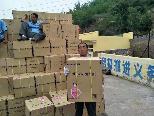 10700臺什么概念,那么龐大的數據,想必在整個凈水領域應該是頭一次出現。當日拉貨的車輛一進吳堡縣,當地就組織了地方幾十個農民來幫忙與漢斯頓員工一起卸貨,幾十輛三輪車排成長隊等候,從卸貨裝車就花了幾個小時,溫暖的畫面上灑滿了辛勤員工的汗水。