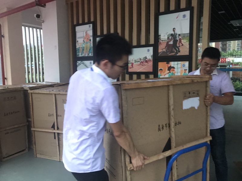 當(dāng)天漢斯頓員工頂著36℃的高溫,在校園里忙碌著,原本歡聲笑語的校園,因?yàn)槭罴僮兊檬殖良拧V皇桥紶柲芸吹綆讉€(gè)遠(yuǎn)鄉(xiāng)留校的身影,但是這并不影響安裝凈水設(shè)備師傅的激情,可能是學(xué)校想給即將返校的學(xué)生們一個(gè)驚喜,選擇學(xué)生們離校的時(shí)候大規(guī)模安裝凈水設(shè)備,凈水設(shè)備都放置在教學(xué)樓每層樓道專設(shè)的飲水處,以及教師辦公室,供學(xué)生和教職工們?nèi)粘o嬘谩?/span>