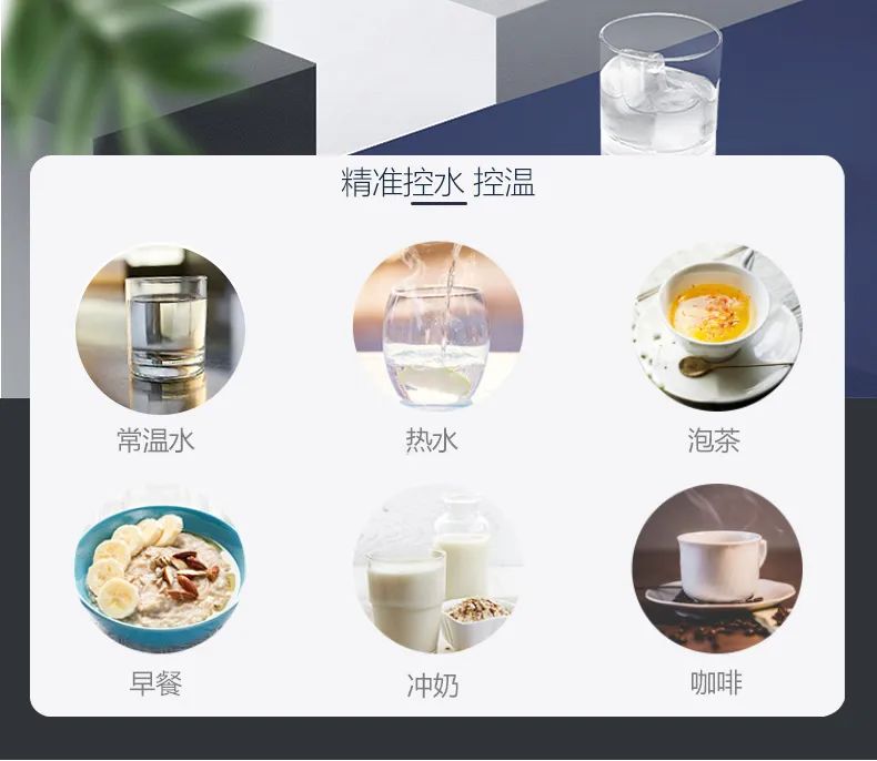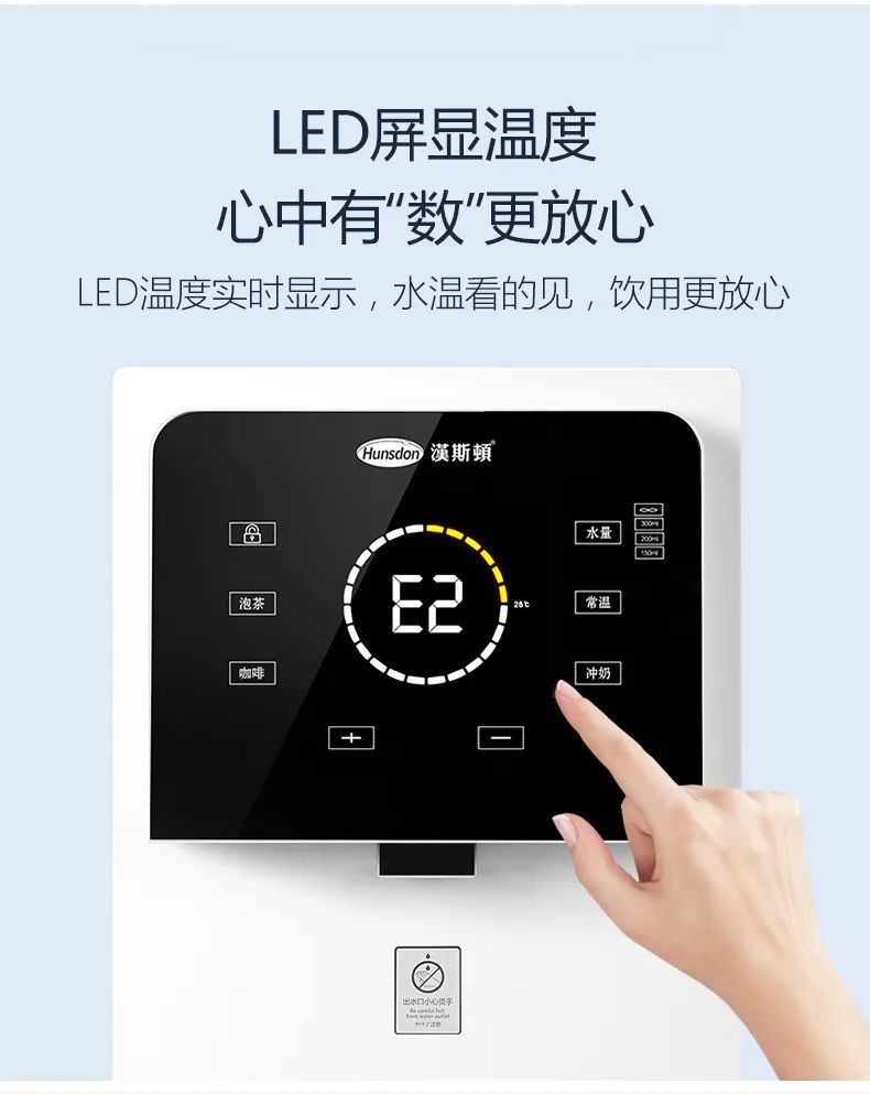 LED屏,一鍵觸控,定制水量調節+常溫+泡奶選擇,具有流量記憶,不用頻繁設置,自動記住你要的選擇,安全可靠;多檔水溫精準可調,秒速即熱,每一杯都是新鮮水,用不同的溫度匹配不同的飲品。