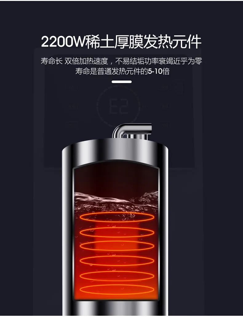 高效節能,熱效率高達97%,長期使用功率損耗在3%以內,熱損耗幾乎為零,性能穩定無衰竭;使用壽命長,壽命是普通發熱元件的5—10倍;所有電熱元件,達到高節能標準,飲多少加熱多少,不再浪費。