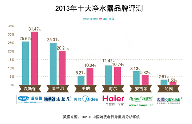 2013年凈水器市場十大品牌排名解析: