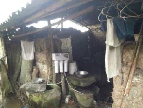 圖為:深圳凈水器品牌漢斯頓捐贈一臺凈水器給農(nóng)村孤寡老人