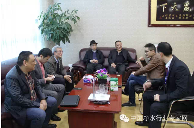 圖為凈水專家網(wǎng)專家團隊和漢斯頓領(lǐng)導