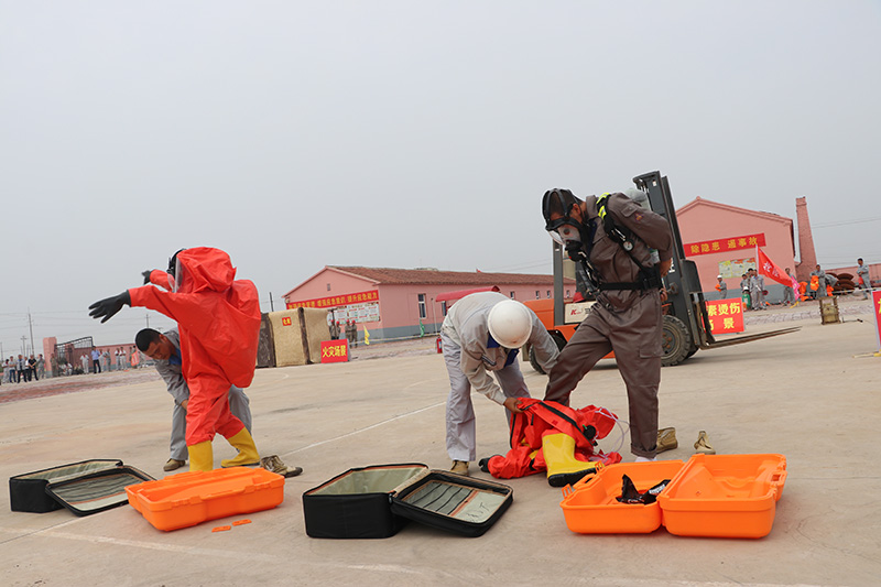 本次參加實戰(zhàn)演練的隊員40余人。活動模擬了機械傷害、中暑、觸電、火災(zāi)、溴素燙傷、氯氣泄露等6個事故場景。在應(yīng)急救援指揮部的統(tǒng)一指揮下和各應(yīng)急救援隊員的準確處置下,人員得到了有效疏散,傷員得到了及時救助,事故得到有效控制,全面檢驗了指揮調(diào)度效率和救援隊伍的應(yīng)急實戰(zhàn)水平,確保了遇到突發(fā)事件能“拉得出、攻得上、打得贏”。演練同時還進行了消防技能、空呼機穿戴、防化服穿戴、空呼機穿戴30米跑等比武活動。