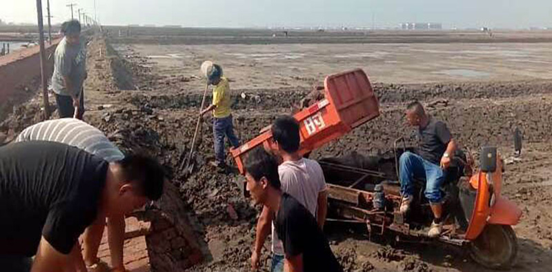 天氣高溫、潮濕且突發性的頻繁降雨,給長蘆鹽業公司的原鹽生產帶來一定的影響。特別是由于渤海新區占地,周邊荒灘面積較大,排淡路線較長、排淡不暢,如遇較強降水天氣極易形成內澇對生產造成威脅。長蘆鹽業公司對防汛工作高度重視,結合集團公司生產部提前對15800米護灘埝進行了長高加固,并對排淡道進行了疏通,對防汛設備進行了檢查維修。制定下發了《長蘆鹽業公司2019年防汛工作實施方案》和《防汛險情預案》,成立了防汛領導小組和防汛突擊隊,嚴格落實值班制度,充分利用塑苫面積,努力發揮其抗雨保鹽、保鹵的作用。