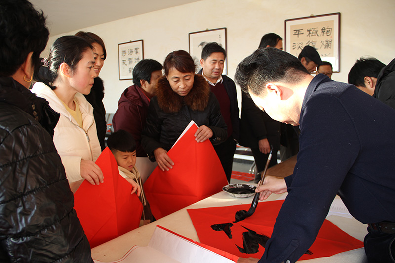 集團公司黨委委員、紀委書記狄彬親自帶領集團公司書法志愿者,分別在青鋒農場和原二分場大院,進行了現場書寫,受到青鋒群眾及公司職工的歡迎。一幅幅喜慶的春聯,一張張熱情的笑臉,伴隨著愉快的笑聲,活動現場充滿歡樂祥和的氣氛。