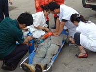 演練現(xiàn)場:醫(yī)療救援人員對中毒人員進行搶救