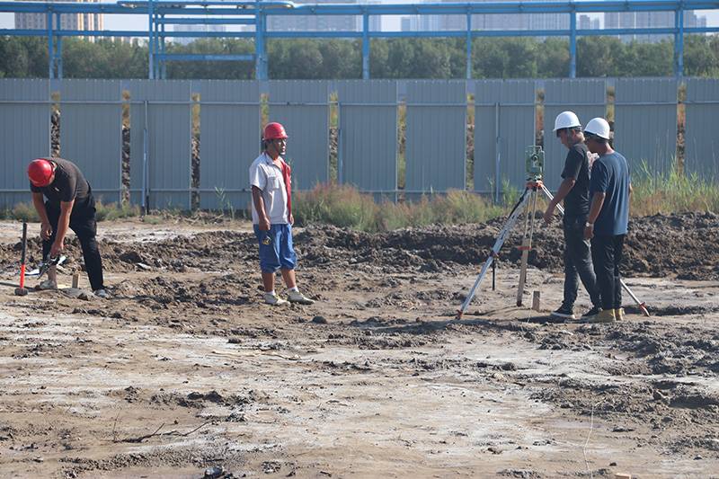 自5月份取得各項施工資質后,建筑工程公司便積極參與建筑市場的競爭,并于6月1日與河北啟邦機械制造有限公司簽訂了大口徑鋁鎂合金螺旋焊管1#檢測車間的施工合同。為了確保工程順利實施,建筑工程公司及時成立了項目籌建部,積極協助河北啟邦機械制造有限公司跑辦施工許可證,溝通工程相關事宜,并提前做好了路面硬化、項目部設置、防疫等工作。施工許可證辦結后,9月4日,安全、質檢、測量等人員正式入駐施工現場,拉開了工程建設序幕。截至9月8日,已完成放線和打樁工作。目前,測量人員正在對因樁機震動造成放線點位的可能誤差進行復線矯正,待復線完工后,將依次進行開槽、基礎施工和鋼結構施工。預計11月15日前完成全部工程施工。