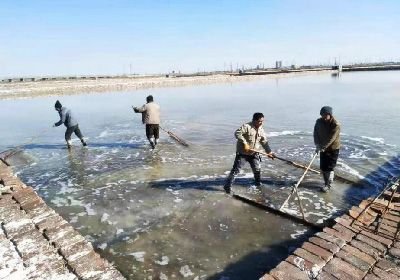 各制鹽工區牢牢把握天時,把制鹵競賽和越冬池處理當作首要任務,根據鹵水情況加快越冬池處理晾曬速度,從春節至正月初七,長蘆公司共處理越冬池1.3萬公畝,處理面積達50%以上,為春曬多產鹽、產好鹽打下了基礎。