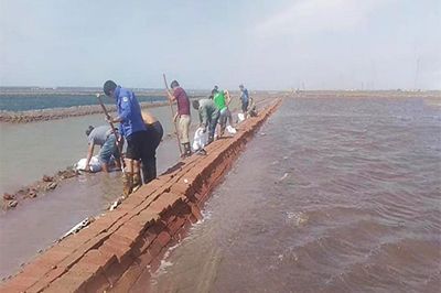 為了確保安全渡過此次天氣過程,長蘆公司領(lǐng)導(dǎo)與防汛辦公室人員深入到各單元、重點部位、關(guān)鍵閘涵,對片淡、塑苫防風(fēng)、排淡情況進(jìn)行現(xiàn)場檢查。各單元也加強24小時巡查,防止池埝、護(hù)灘埝發(fā)生險情,保障排淡及時正常進(jìn)行。