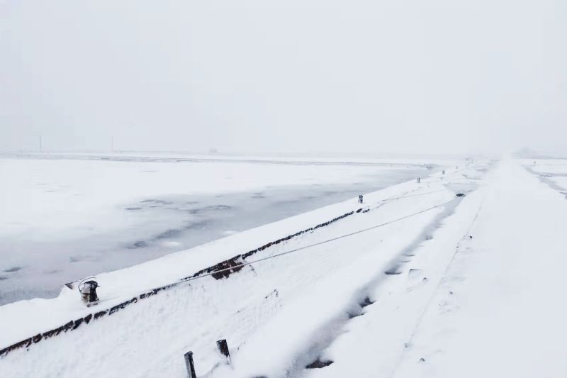 11月6日傍晚,降雨開始,制鹽一線各單元及時采取了片淡措施。至夜間,降雨和風力加大,陣風達到9級以上,氣溫降至零下,部分老化塑膜在低溫、狂風下出現破損。各制鹽隊組織職工連夜進行搶修,防止損失擴大。7日早晨,降雨轉為降雪,池內塑膜被積雪覆蓋,一線職工冒著狂風暴雪進行片淡、除雪,并繼續對在狂風中受損的塑膜、線路進行搶修。雨雪中,長蘆公司領導帶領生產質量部人員,趕往各個生產單元,隨時掌握災情,現場指揮抗災。