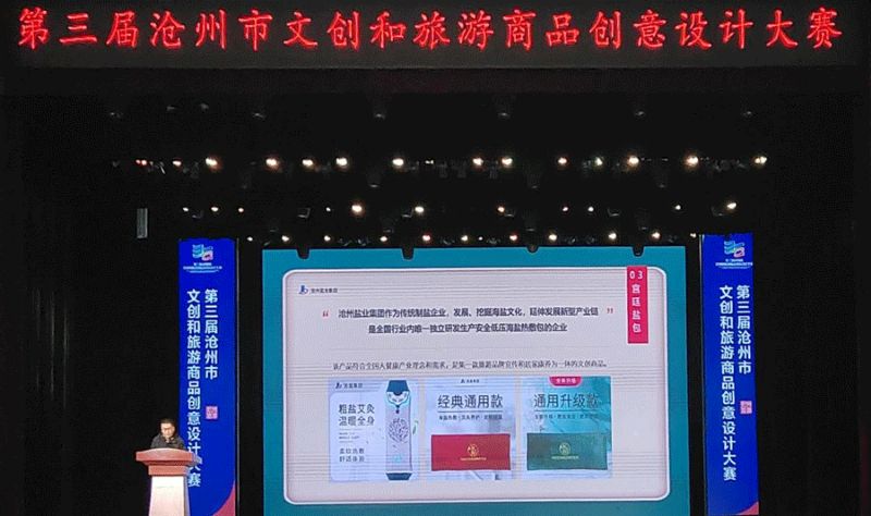 12月2日,第三屆滄州市文創和旅游商品創意設計大賽路演暨頒獎典禮在滄州文化藝術中心舉行。“滄鹽”牌海鹽熱敷包(宮廷款)榮獲銀獎。