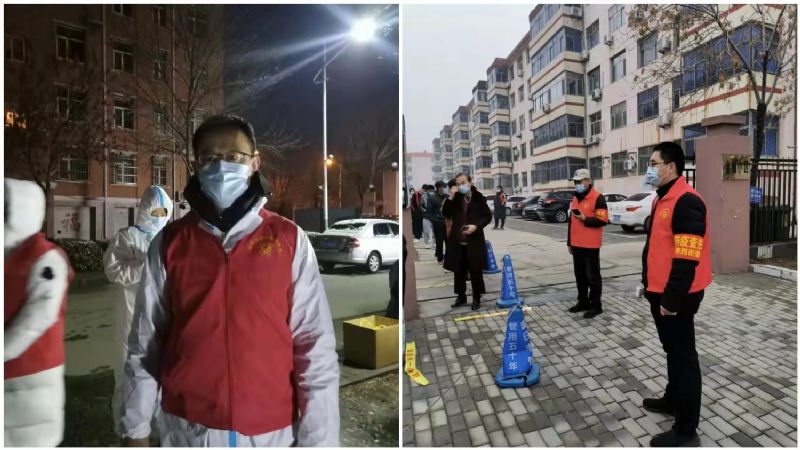 “一夜之間封控了,首先感到的是恐慌,可是,做為共產(chǎn)黨員的我,感受到了疫情的嚴(yán)峻,疫情就是沖鋒號(hào),我第一時(shí)間就是給社區(qū)打電話,報(bào)名加入志愿者,加入戰(zhàn)斗”保衛(wèi)部職工陳寶龍第一時(shí)間在渤海新區(qū)紅郡小區(qū)參加了疫情防控志愿服務(wù)。