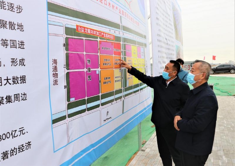 在滄鹽龍順木材加工產(chǎn)業(yè)基地,觀摩團(tuán)現(xiàn)場聽取了華北進(jìn)口木材產(chǎn)業(yè)園、滄鹽龍順木材加工產(chǎn)業(yè)基地項(xiàng)目概況。黨委書記、董事長劉建軍向?qū)m建軍詳細(xì)介紹了項(xiàng)目推動情況及下步總體推進(jìn)計劃。宮建軍對滄鹽集團(tuán)的項(xiàng)目建設(shè)工作給予了充分肯定,并表示,滄州渤海新區(qū)黃驊市將繼續(xù)大力支持滄鹽集團(tuán)的各項(xiàng)工作,希望滄鹽集團(tuán)進(jìn)一步抓好招商引資和項(xiàng)目建設(shè)工作,為滄州渤海新區(qū)黃驊市的發(fā)展做出更大貢獻(xiàn)。