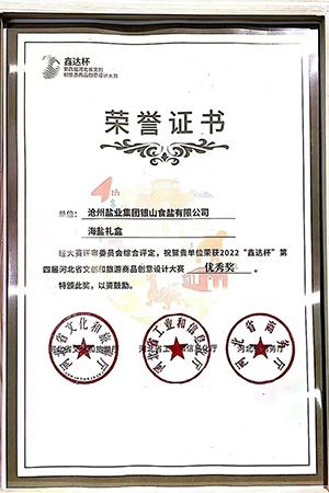 本次大賽由河北省文化和旅游廳、河北省工業(yè)和信息化廳、河北省商務(wù)廳聯(lián)合舉辦,自2022年4月開(kāi)始啟動(dòng)。為了提升公司產(chǎn)品影響力,提升品牌形象,銀山食鹽有限公司積極準(zhǔn)備,確定以滄鹽牌“海鹽禮盒”為參賽作品。宣傳部配合銀山公司精心準(zhǔn)備,專門派出姬曉曼全程參與設(shè)計(jì)和路演。初賽采取網(wǎng)絡(luò)投票、視頻介紹的方式進(jìn)行。滄鹽牌“海鹽禮盒”經(jīng)過(guò)層層選拔篩選,與其他7件作品從全市眾多參賽作品中脫穎而出,代表滄州市入圍河北省文創(chuàng)和旅游商品創(chuàng)意設(shè)計(jì)大賽決賽。2022年12月14日,第四屆河北省文創(chuàng)和旅游商品創(chuàng)意設(shè)計(jì)大賽決賽在石家莊以視頻會(huì)議加網(wǎng)絡(luò)直播的形式舉行,選手通過(guò)網(wǎng)絡(luò)進(jìn)行路演,評(píng)審線上進(jìn)行打分。最終,滄鹽牌“海鹽禮盒”榮獲河北省文創(chuàng)和旅游商品創(chuàng)意設(shè)計(jì)大賽優(yōu)秀獎(jiǎng)、滄州市文創(chuàng)和旅游商品設(shè)計(jì)大賽創(chuàng)新創(chuàng)意獎(jiǎng)。