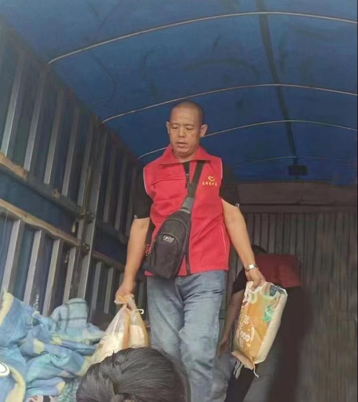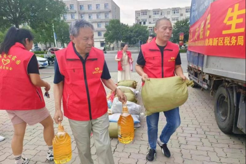7月29日早晨5時,張元彬攜妻兒與所屬的渤海新區黃驊市港城區春暉志愿者團隊聯合渤海新區黃驊市紅色朝陽志愿者團隊,共計50余人驅車四百多公里前往保定淶源愛心互助家園,為當地孤寡老人及兒童送去了衣服、被子、鞋、米、油、書包、筆等生活、學習物資必需物品。這是張元彬全家第三次去淶源山區進行志愿服務。