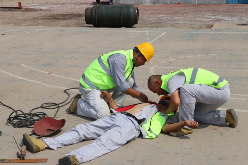 本次演練模擬了機械傷害、中暑、觸電、火災、溴素燙傷、氯氣泄漏等六個事故場景。演練開始前,進行了空呼機穿戴、全封閉防化服穿戴、空呼機穿戴30米跑、消防等技能比武活動。通過演練和技能比武,提高了消防、搶險突擊隊快速、正確、有效地救援、應變處置能力,筑牢了安全生產最后一道防線,為進一步完善集團公司事故應急管理體系奠定了堅實的基礎。