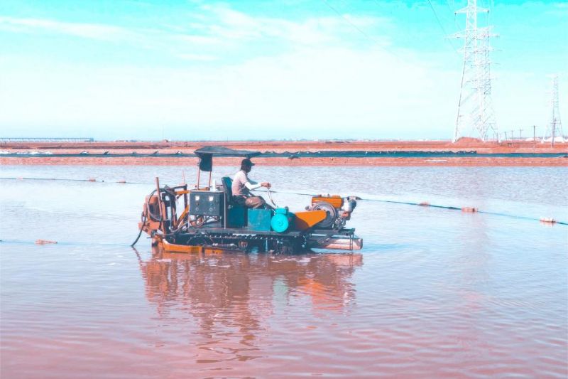 國慶假期,長蘆公司各生產單元強化制鹵操作,為充分利用蒸發量,制鹵人員堅持低溫操作、高溫結晶,夜間對結晶池換鹵,白天過圈、走水,提高各級鹵水存量;各生產單元根據鹵水情況,合理調整鹵水趕制步驟和面積比例,使各級鹵水供需平衡,濃度銜接,操作流暢,提高了制鹵效果。另外,制鹵人員充分利用邊角鹽末和扒鹽隨水串壕,努力提高中高級鹵水存量和送鹽鹵水質量,加快結晶池換新。操作工嚴格執行各項操作標準,做好收鹽、留碴、勻碴、活碴、除混、成碼等各項工作。各級管理人員提高管理質量和執行力,加強結晶管理,嚴格分曬、合理控制各段的終止濃度,堅持“新、深、長”工藝。為保證秋扒完的結晶池活碴不起混、不傷池板、使晶體生長規則、提高原鹽顆粒度,各單元統一采取了人工活碴。