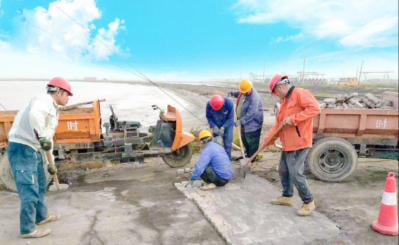 安全帽下,參與施工的建筑工程公司職工黝黑的皮膚反射著太陽(yáng)的光芒,看著原本凸凹不平坑坑洼洼的路面變得平坦結(jié)實(shí),他們都露出了滿意的笑容。