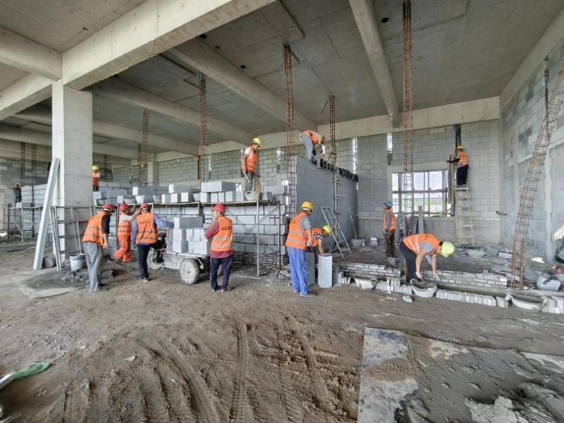 目前,該項(xiàng)目會議中心二次結(jié)構(gòu)砌體工程以及二層至頂層也已全部完工,職工們正緊鑼密鼓地對會議中心一層進(jìn)行砌筑施工,力爭9月下旬完成主體工程驗(yàn)收。