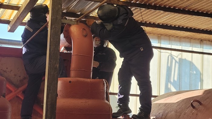雖然近期天氣嚴寒,夜間氣溫降至零下十幾度,但為了盡快完成維修任務,溴素二廠職工們不畏寒冷,穿戴齊全防寒服、棉靴子、皮棉帽和棉手套等御寒護具,在共產黨員、班組長的帶領下,全力投入維保工作。叉車在廠區來回穿梭,職工們不懼寒風凜冽,干得熱火朝天。