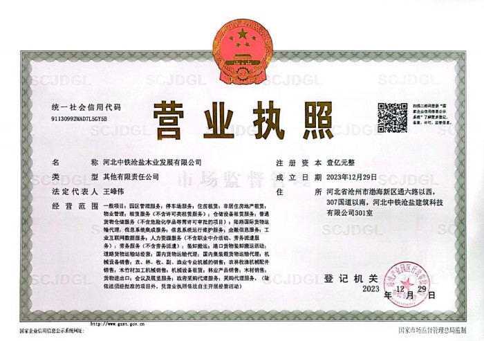 2023年12月29日,河北中鐵滄鹽木業(yè)發(fā)展有限公司注冊成立,標(biāo)志著滄鹽集團(tuán)引入央企三級子公司正式落地,華北進(jìn)口木材產(chǎn)業(yè)園建設(shè)正式拉開序幕。