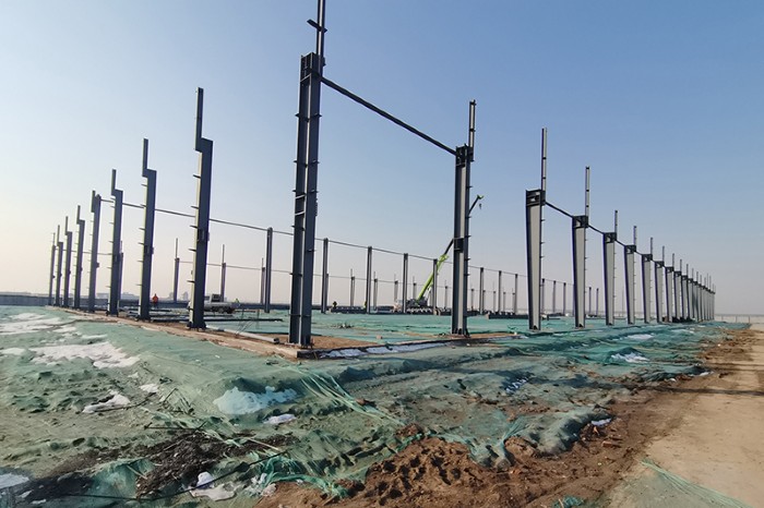 1月6日,滄鹽龍順木材加工基地項目鋼結構標準化廠房正式進入安裝階段。