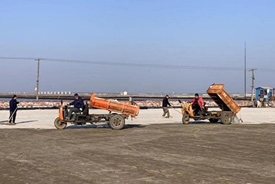 節(jié)日期間,班子成員帶頭堅守崗位值班值守,同時做好所屬各單位的工作督查。各制鹽單位抓住春節(jié)期間氣溫上升的有利時機廣聚鹵源多制鹵,扎實做好結晶池活碴、邊角污染物處理,潑水滅塵等工作,做好越冬結晶池晾曬處理。2月6日至16日,長蘆公司共晾曬處理越冬結晶池1.3萬公畝,換新鹵結晶面積占正在結晶面積的52%以上,提前進入春曬狀態(tài)的同時為應對下步天氣過程做好了充足準備。部分生產單元還根據鹵水存量,適時拖泥、晾池、軋實、撒鹽種、量鹵灌池,做好冬灌工作,增加結晶面積,至2月16日,新增結晶面積547.7公畝。