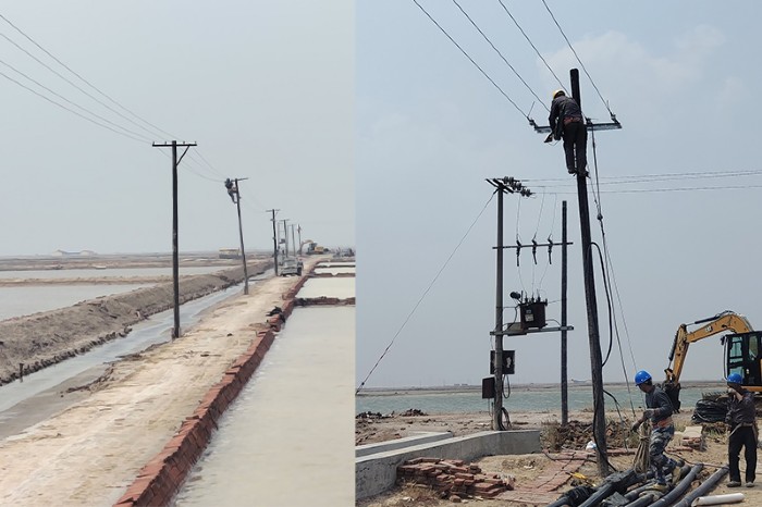 春扒將至,為了保障春扒順利進行,青鋒鹽業有限公司針對鹽區電力實際,從4月28日開始,利用三天時間,對二、三號灘的輸電線路進行了更新。