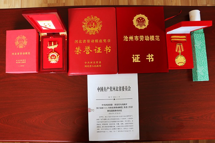 近日,集團公司安全環保部職工崔樹明、人力資源部職工張軍分別榮獲河北省、滄州市勞動模范稱號。5月21日,黨委委員、工會主席崔國芳向該2人發放了勞模證書。