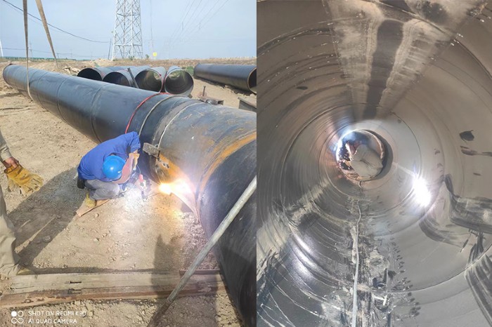 截至6月25日,漣洼排干北鹵南輸泵站輸水管道焊接工程已完成150米。
