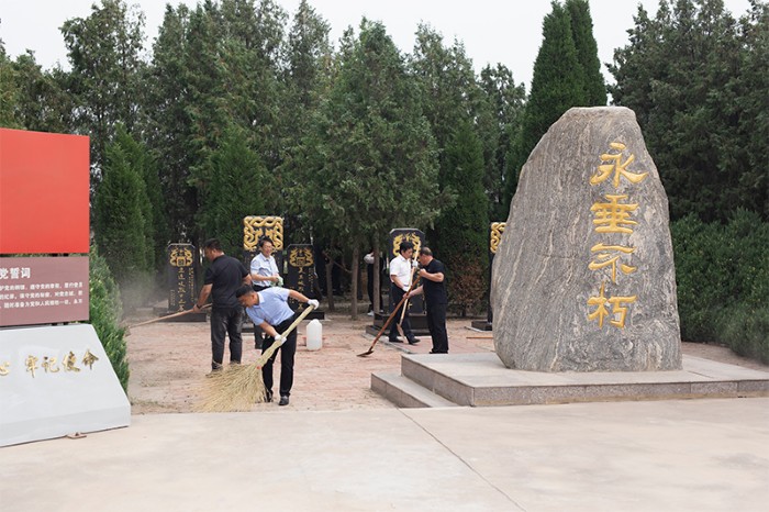 活動中,干部職工對革命烈士紀念碑行鞠躬禮,緬懷烈士們的豐功偉績。隨后,大家對陵園的環境衛生進行了全面清掃,對每一塊烈士墓碑進行了擦拭,對人民英雄祠堂進行了整理。