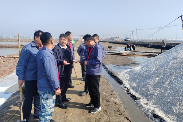 目前,在長蘆公司廣袤的灘田上,到處是繁忙的扒鹽工作景象。預計第一碴春鹽可平均采收5公分,至6月上旬完成春扒產鹽目標。
