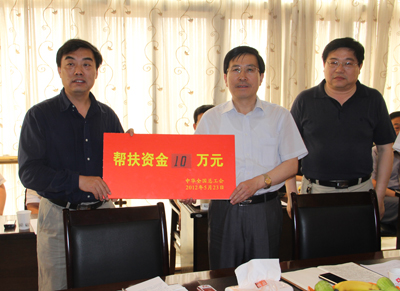 陳杰平代表全國總工會向滄鹽公司捐贈了10萬元幫扶資金和數萬元的專業技術書籍;慰問了部分困難職工和省級以上勞動模范,與他們進行了親切交談,向他們發放了慰問金和米面油等生活必需品;并與程同海一起,為公司職工書屋揭牌。
