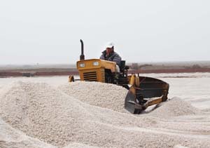 繼公司“管理升級、產業升級、春扒生產”動員大會召開后, 4月14日,春扒生產全面鋪開。各制鹽場嚴格執行春扒生產會議要求,在掌握好春扒進度的同時,以制鹵和質量管理為重點,堅持新鹵送鹽,在保證上鹽量的同時,重點加強了除混、留茬、邊角處理等各項操作環節上的質量控制。生產部對開耙單元扒鹽工藝標準執行落實情況進行了督導和檢查,并分別參加了制鹽一場、二場召開的扒鹽現場會,進一步嚴明了扒鹽工藝操作紀律和標準。截至4月27日,公司春扒原鹽40090噸(含青鋒),春扒面積9256公畝,單產4.3噸/公畝。