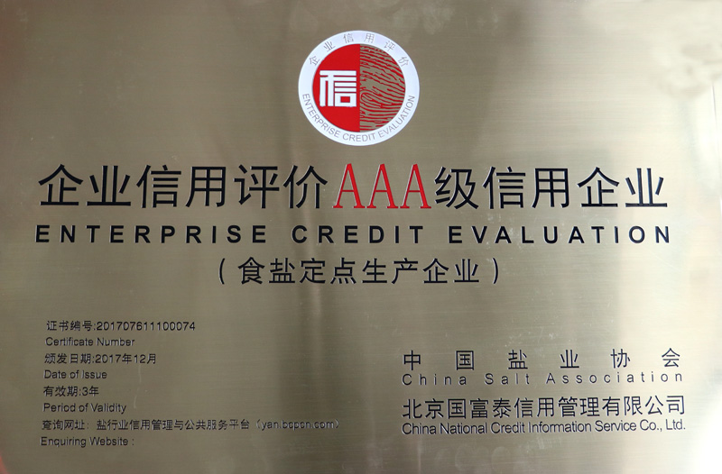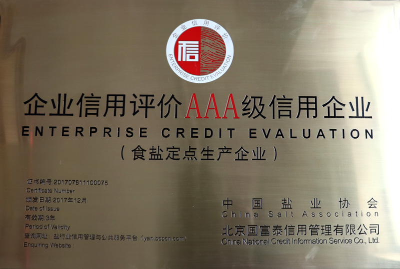 此次評定是經(jīng)第三方專業(yè)評價機構(gòu)嚴(yán)格評價和中國鹽業(yè)企業(yè)信用等級評價委員會審核,并通過向社會公示無異議,評定出56家AAA級食鹽定點生產(chǎn)企業(yè)。