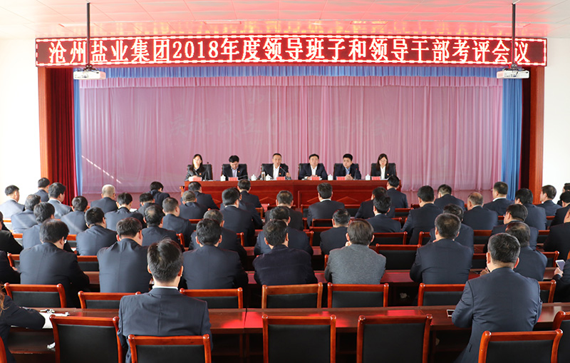 黨委副書記李蜻海代表公司領導班子作了2018年度述職述學述廉述法報告,他表示,2018年,滄鹽集團黨政班子在市委、市政府和新區黨工委、管委會的正確領導下,團結帶領廣大干部職工,解放思想,創新理念,開拓進取,奮發作為,克服了重重困難,各項工作均取得明顯成效。今后工作中,滄鹽黨政班子將堅持以習近平新時代中國特色社會主義思想為指引,不斷增強“四個意識”,堅定“四個自信”,做到“兩個維護”,進一步解放思想,轉變觀念,搶抓機遇,加壓奮進,不斷推動企業又好又快發展。