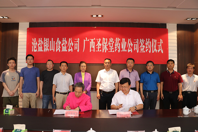 6月6日,滄鹽集團(tuán)銀山食鹽公司與廣西圣保堂藥業(yè)公司合作意向簽約儀式在集團(tuán)三樓會(huì)議室舉行,銀山食鹽公司經(jīng)理、法人代表高文生與廣西圣保堂董事長(zhǎng)黃愛強(qiáng)分別代表雙方簽署合作意向書。