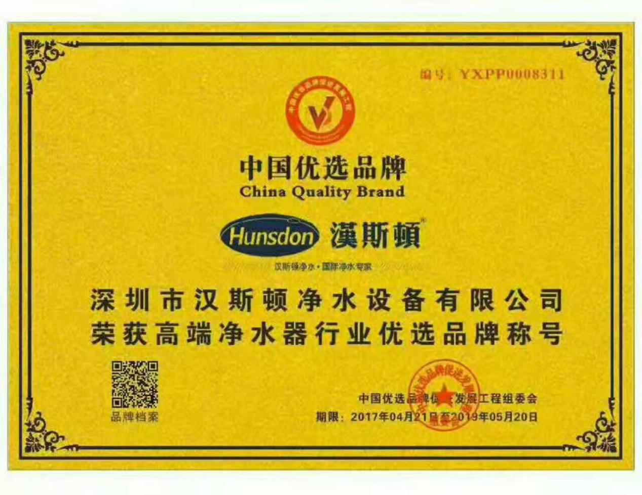 2017年8月,漢斯頓榮獲“中國優(yōu)選品牌”,這是由中國優(yōu)選品牌促進(jìn)發(fā)展工程組委會(huì)頒發(fā),是與中央電視臺(tái)聯(lián)合創(chuàng)建《發(fā)現(xiàn)·品牌》的欄目,旨在共同挑選讓消費(fèi)者放心,讓國際認(rèn)可的品牌企業(yè)。漢斯頓依托先進(jìn)的技術(shù)和生產(chǎn)工藝,專注于綠色環(huán)保凈水設(shè)備的研發(fā)和生產(chǎn),產(chǎn)品以其高效、安全、健康的特性迅速占領(lǐng)市場(chǎng),帶給用戶高品質(zhì)的舒適體驗(yàn)和全方位的貼心服務(wù),從而獲得“中國優(yōu)選品牌”榮譽(yù)稱號(hào),這也是市場(chǎng)和消費(fèi)者對(duì)漢斯頓的認(rèn)可的體現(xiàn)。
