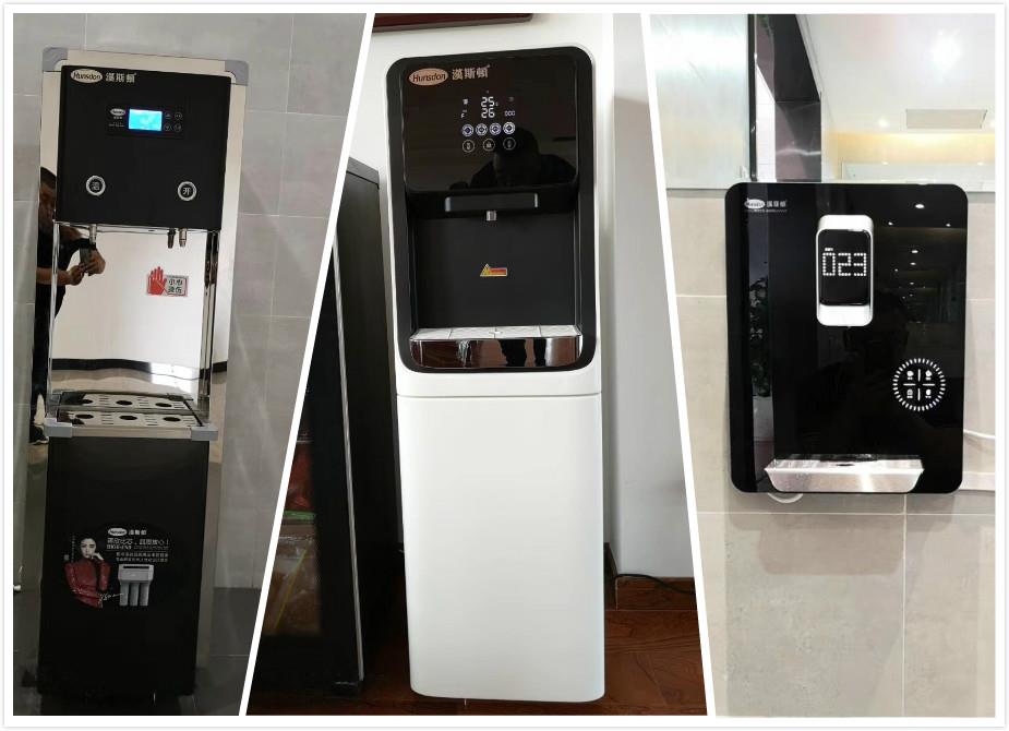 在獨(dú)立辦公室配置的是漢斯頓HSD-02-100G商用直飲凈水機(jī),在走廊、大廳等職員人流量大的場所配置的是漢斯頓HSD-200G-KB120商用凈水機(jī),并配備商用管線機(jī)。
