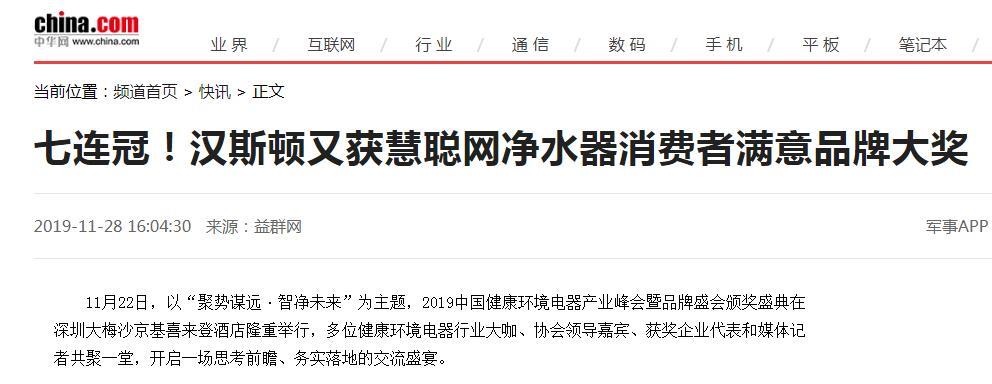 媒體的肯定,用戶的青睞,配合漢斯頓先進的技術,優質的產品,才讓漢斯頓在凈水行業,一次又一次震撼人們的眼球。我們有理由相信,目前漢斯頓取得的成績,只是漢斯頓深厚技術產品積淀的冰山一角。在未來,漢斯頓一定會帶給我們更多驚喜!