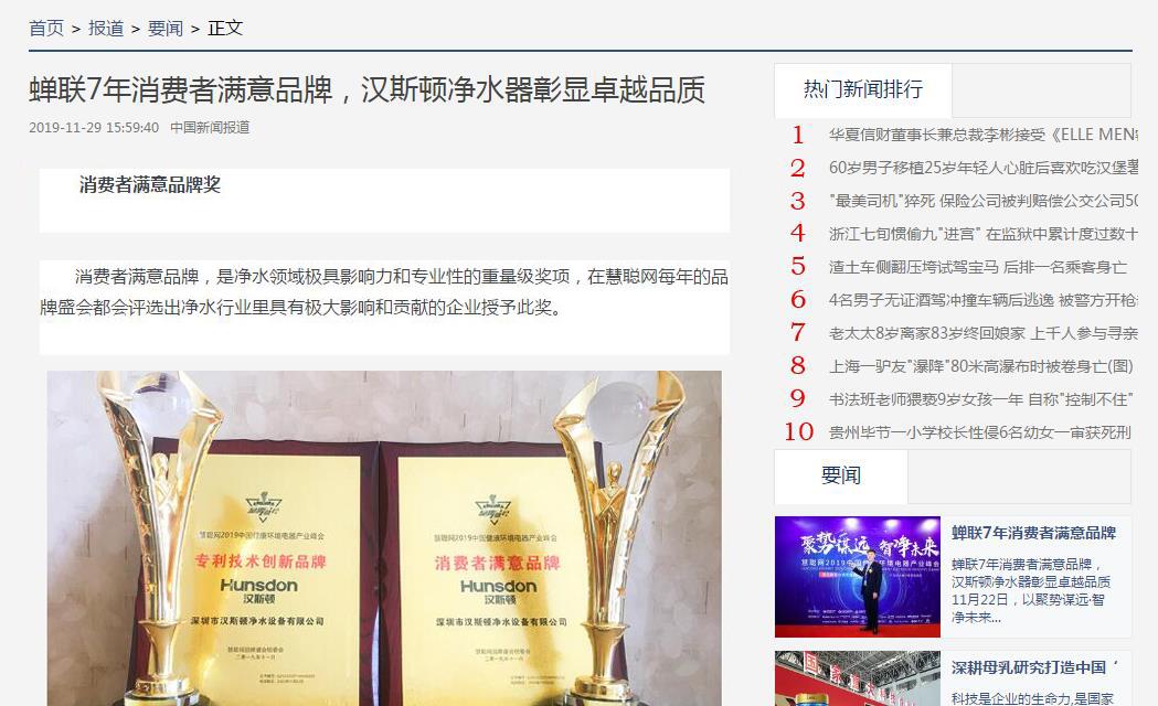漢斯頓連續7年斬獲慧聰網消費者滿意品牌,不斷獲得中國新聞報道、深圳資訊、中國金融商報、中華網等權威媒體報道。