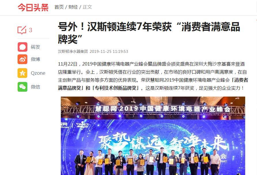「消費者滿意品牌獎」是凈水領域極具影響力和專業性的重量級獎項。