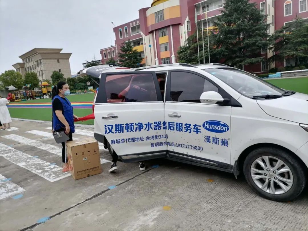 “與愛同行,凈惠湖北”。2020年8月25日,在漢斯頓黨支部的領導下,漢斯頓駐麻城總代理開展愛心公益活動,為麻城市幼兒園捐贈一批凈水設備,為該校幼兒的飲水健康提供了重要保障。