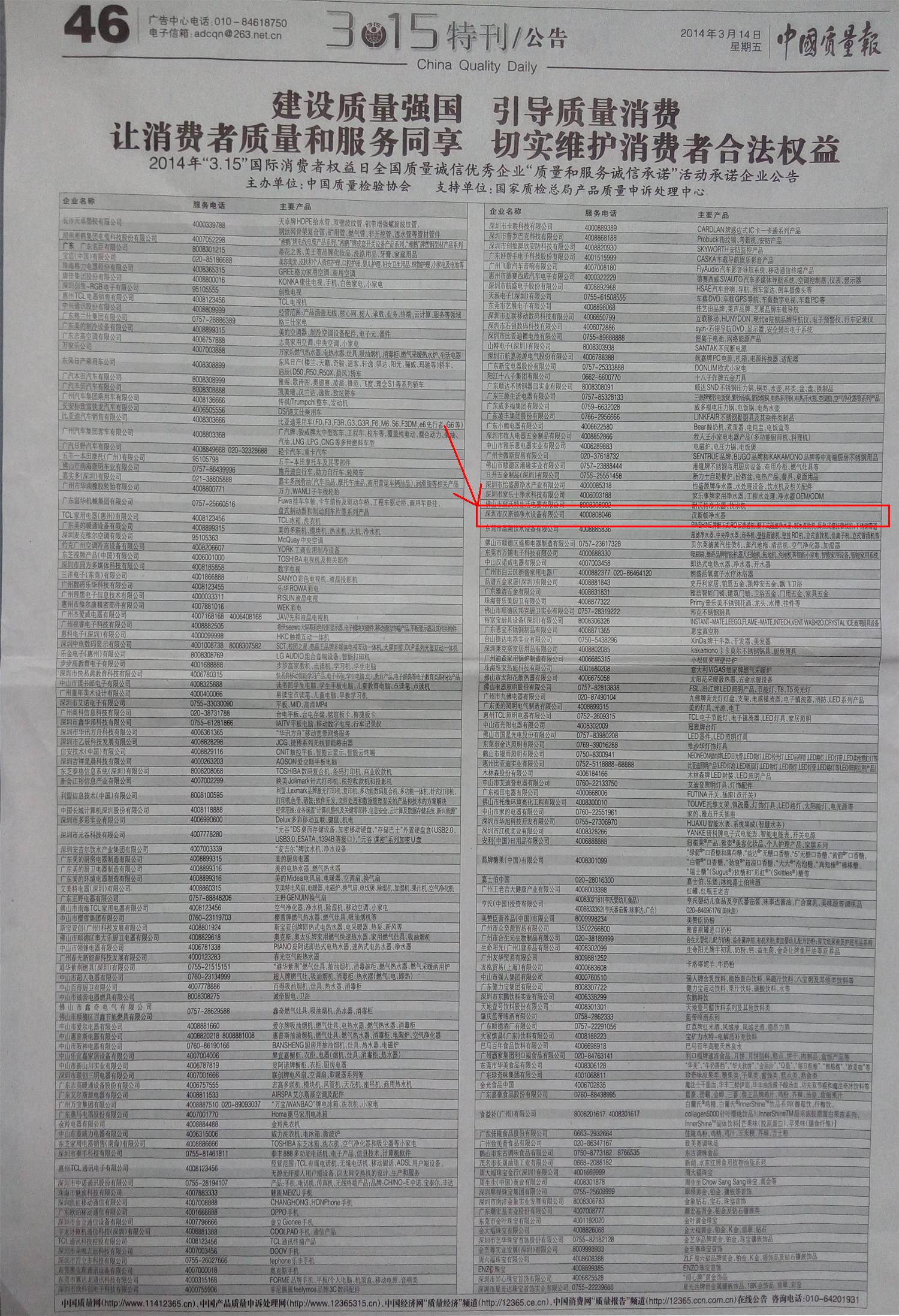 《中國質(zhì)量報》“3.15特刊”46版參考連接:http://epaper.cqn.com.cn/html/2014-03/14/content_196055.htm#