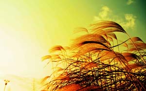 咸土地是咸得出奇的,抓一把空氣都能攥出鹽來。多少年來,很少有花草樹木能在這里抽枝展葉、吐紅滋綠,即使那些養在苗圃里被格外精心照料的花草,能活下來的也是寥寥無幾。然而,就是它——貌不驚人,甚至有點土里土氣的蘆葦卻靠自身的努力,頑強地生存下來,而且活得那樣坦然,站得那樣挺拔,表現得那樣瀟灑。它呼吸著咸澀的風和空氣,抗嚴寒,御酷暑,經年累月,一次次的涅槃,一代代的繁衍,為靜寂、單調的鹽灘增添了勃勃生機。