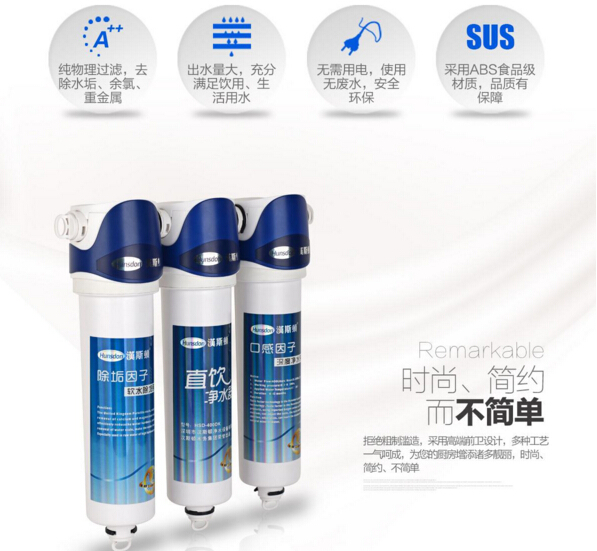 1、直飲機對自來水中的鐵銹、膠體、有機物、細菌病毒等大分子物質有100%的去除作用,使水質更新鮮可口。