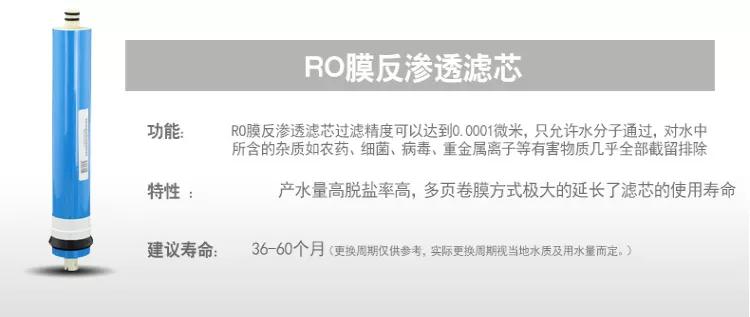 反滲透RO膜濾芯,這個就是看品牌,也就是脫鹽率和穩定性。最好的方法就是用TDS筆測試從RO膜出來的水的TDS值來判斷。